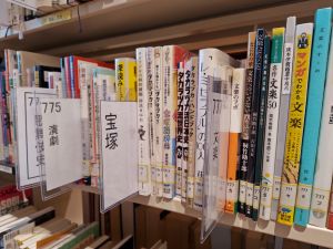 演劇の書架には女子校らしく「宝塚」の表示がありました。