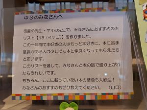 15歳の中3生のために、中3の学年団の教員と共に司書が選んだ本。