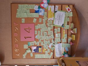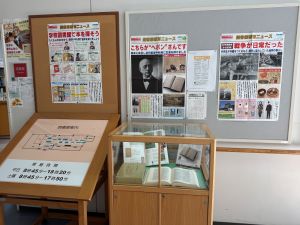 展示スペースには、授業に関する展示、学校行事に関する展示、時事に関する展示、季節の展示と数多くの展示が複数展開されています。