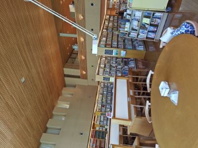 円形の空間はゆったりと広く、机や椅子などの家具は木製で、本当にカフェのように寛いだ空間が広がっています。ただ、円形の壁側にしか本棚がないのなら、蔵書量はあまり多くないのかな? と思っていたら、円形の四分の一は普通の図書館のように本棚の並んだスペースがあって、蔵書もしっかり利用できるようです。