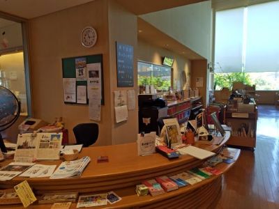 カウンターの隣(写真奥手)には、検索コーナーがあり、デスクトップパソコンが並んでいて自由に触れます。