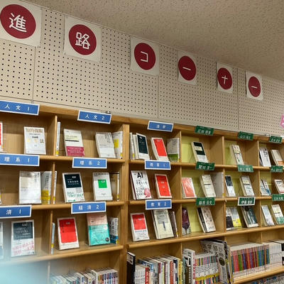コーナー表示が大きく、本を探しやすい工夫があちこちに見られました。