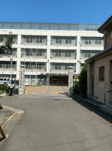 日駒の図書館へ行くときに、前に行ったことがあるという人から「カフェみたいな素敵な図書館ですよ」と聞きました。でも、言うて高校の図書館、カフェみたいだなんて言い過ぎなのでは? と思いながら向かうと、住宅街の中に不意に校門が現れ、いかにも学校の校舎という感じの建物がありました。(2025年7月24日訪問)