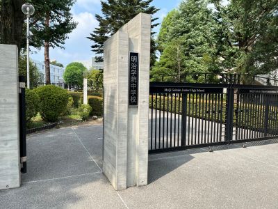 2025年8月23日(土)、私立明治学院中学校・東村山高等学校の学校図書館(以下、図書館)を訪問しました。小川駅(西武拝島線・西武国分寺線)から徒歩8分、緑が豊富で暑さが和らぎます。
