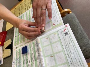 ○中学1年「スタートライン」ブックリスト掲載書を読んで読書ノートに記録し、図書館に持参すると5冊ごとにシールがもらえる。
