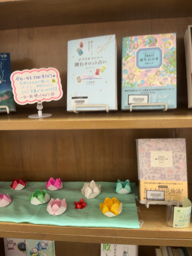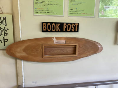 ひまわりのゲートをくぐると、おだやかなあたたかな世界が広がっていました。受付の周辺には、小さいものから大きいものまで水瓶がいくつも。めだかやエビやげんごろうが泳いでいます。さっそくスタンプを押してもらいます。その手元の隣に、押しつけがましくなく控えめに置かれたブックマーク。目ざとく見つけて頂戴しました(ついでに折り方も教えてもらいました!)正面に向き直ると”覆面本”のコーナーです。