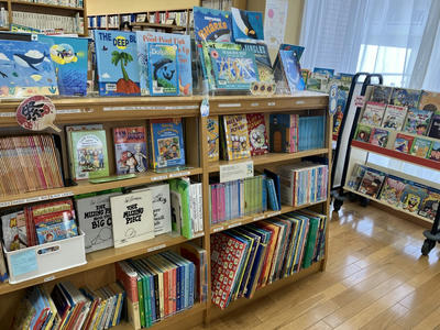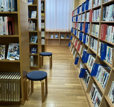 決して広くはない図書館なのですが、本を手に取りやすい工夫や、目を引く展示がたくさんあり、ついつい長居したくなる居心地のよい空間でした。