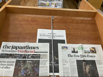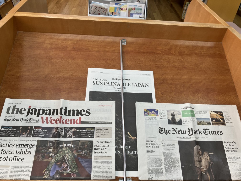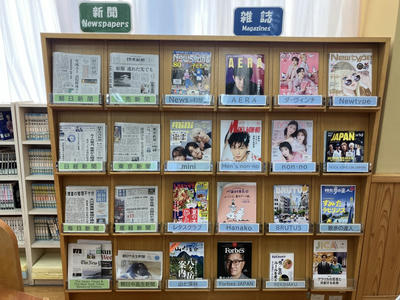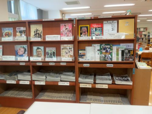 バックナンバーは社説の切り抜きとともに雑誌架に並べられており、利用しやすい工夫がなされています。