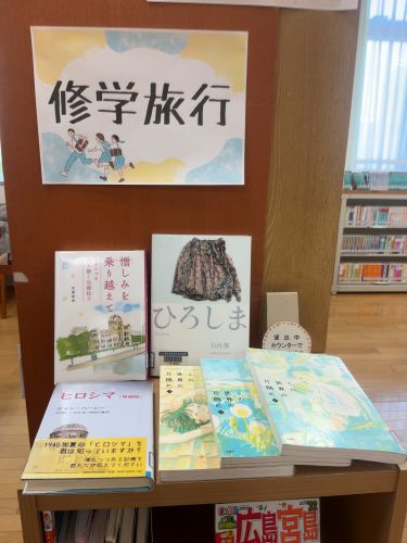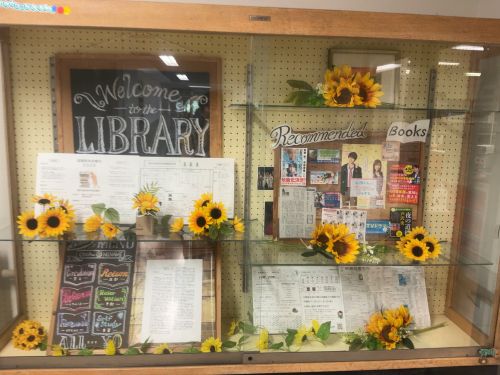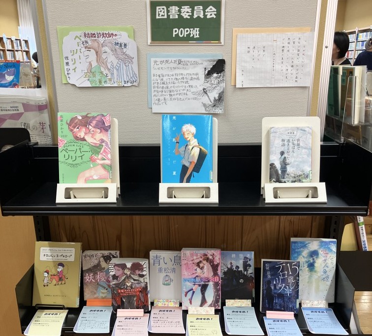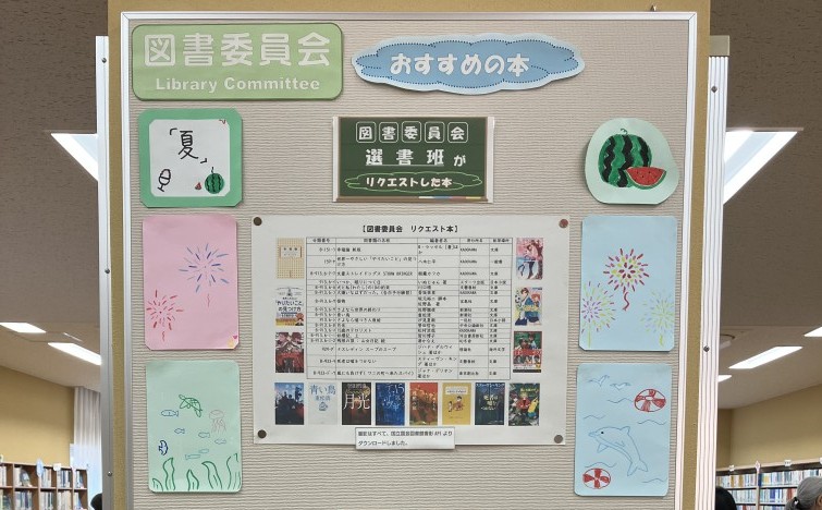 ガラスケースにはおすすめ本などが夏らしくセンスよくディスプレイしてありました。