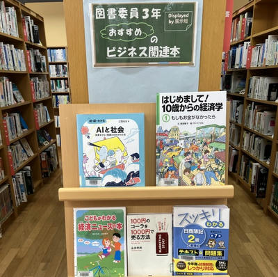『今、調南生に読んでもらいたい!先生たちがおすすめする本』コーナー毎年夏休み前に、先生の紹介文を載せた小冊子を配布しています。赤本コーナーの横には、熱心に自習する生徒の姿が。