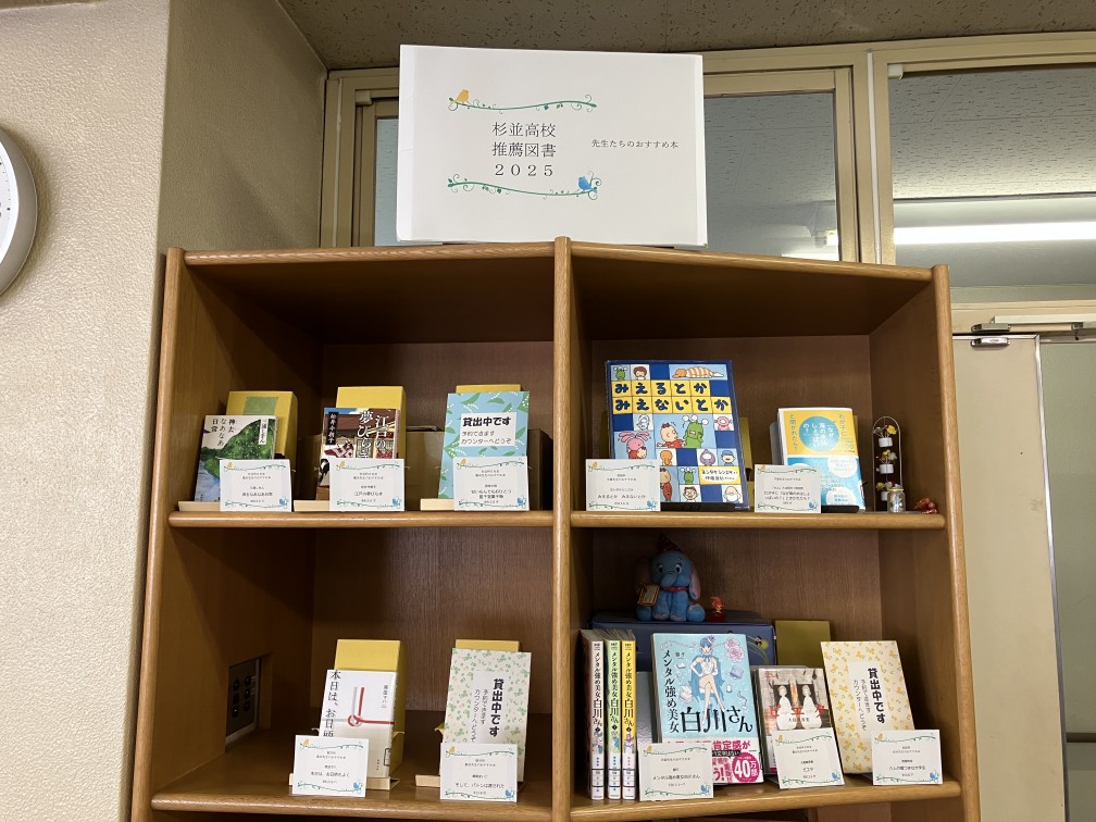書架の中段の棚は、魅力的な本が面出しに並べてあり、思わず手に取りたくなります。