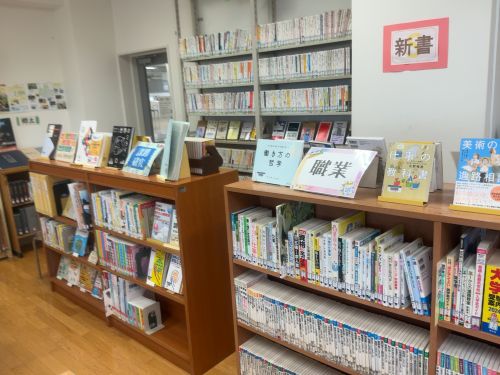 職業コーナー、探究コーナーの奥には新書がズラリ。
