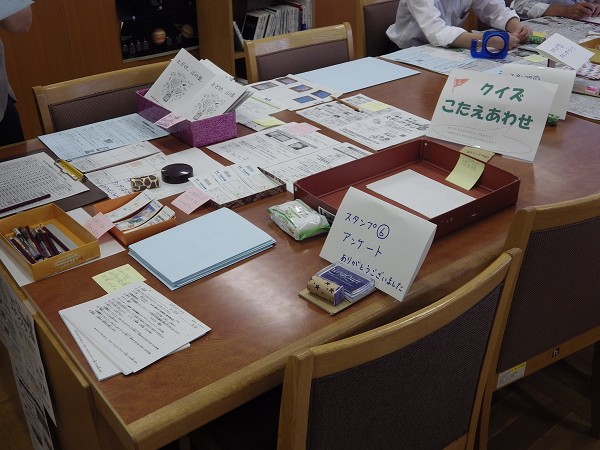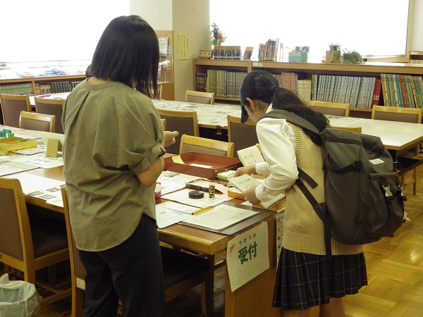 スタンプラリー参加者と、お手伝いの図書委員の生徒が次々と来館していました。