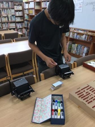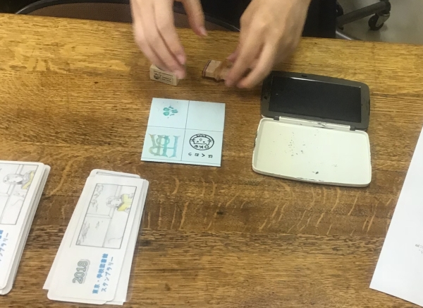 ミニ活版印刷機でしおり作りを体験させてもらいました。
