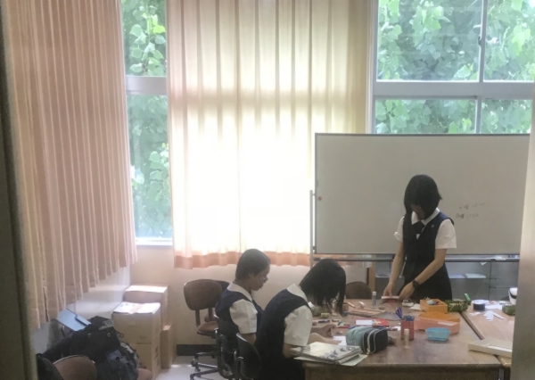 現在、同好会は7~8年生(中2、3)の男子3名、女子3名の計6名。生徒さんに教えてもらって、子どもと一緒に、