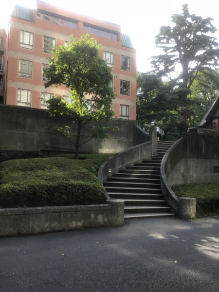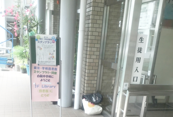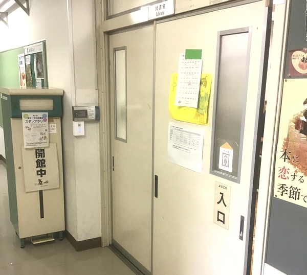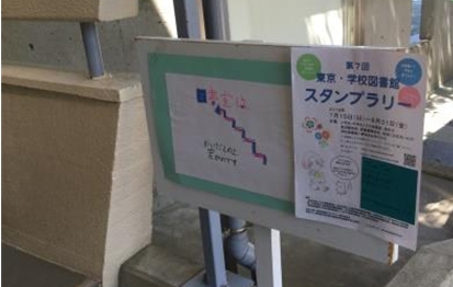 さらに進むと階段を上るようにとの案内。図書館は外から直接入れるようになっていました。