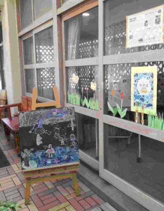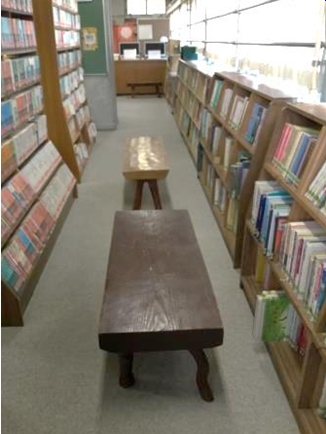 館内のあちこちに置いてある椅子は、9年生(中学3年生)が卒業制作でつくったもの。
