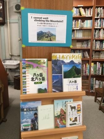 普段は小学4年生から9年生(中学3年生)が使っているそうです。7月末に7年生(中学1年生)が行ったばかりという八ヶ岳の本が展示してありました。