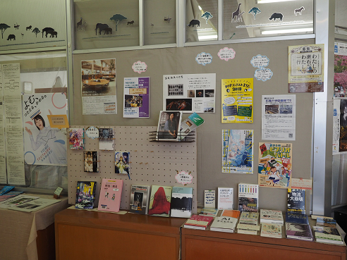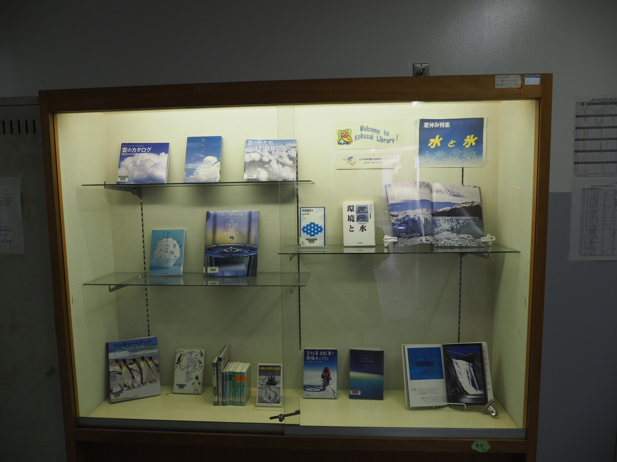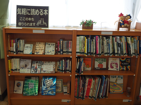 ちょっと涼しげな表紙の図書にお出迎えされてホッと……。