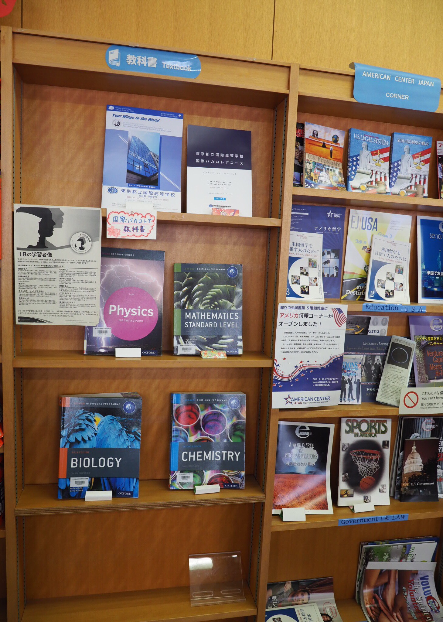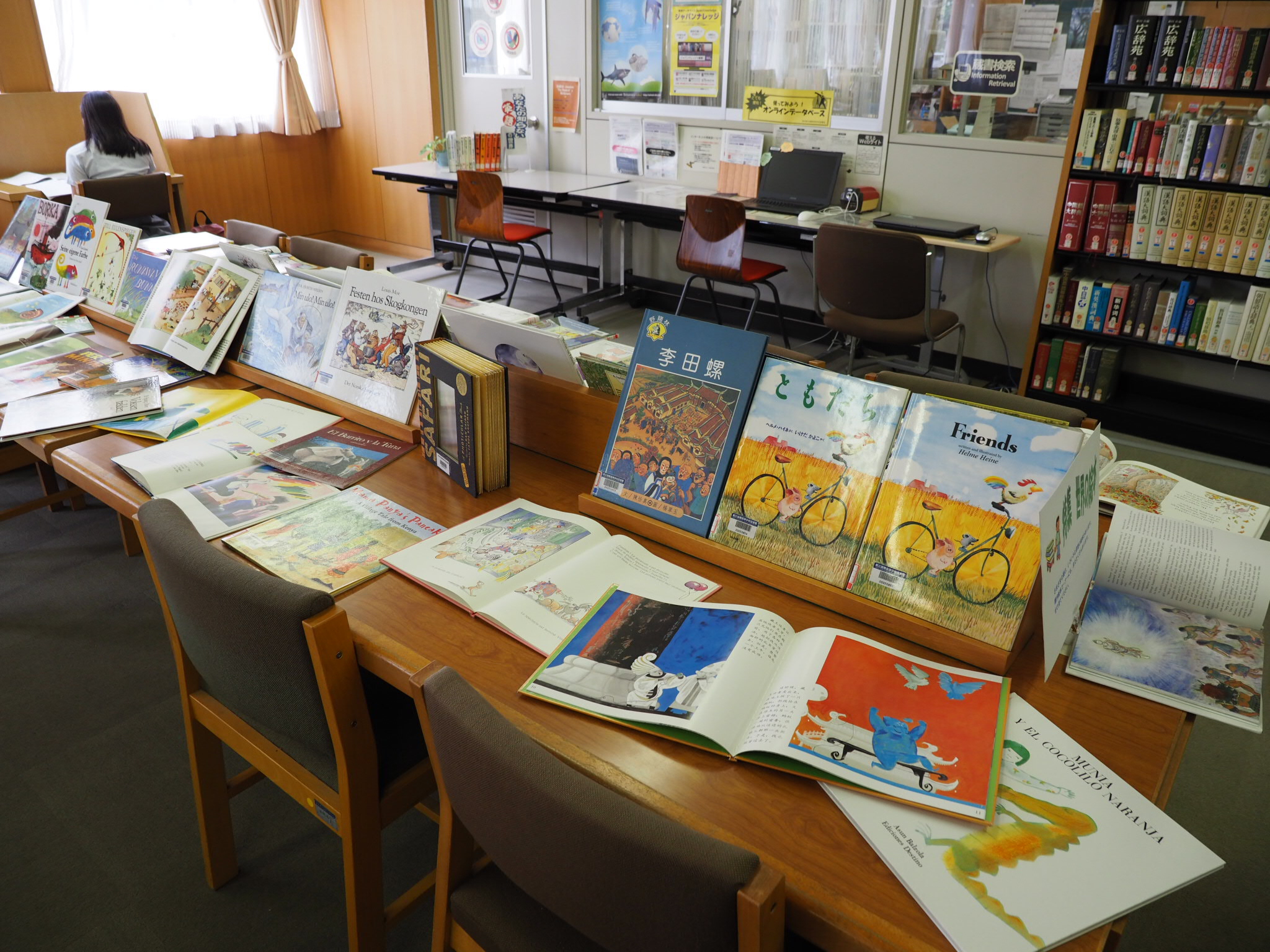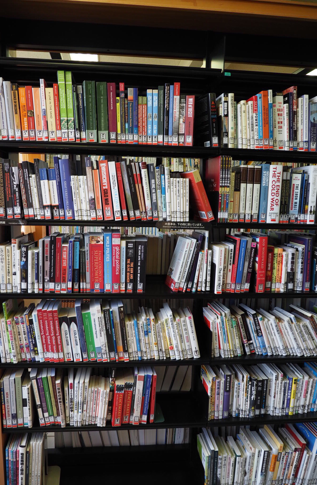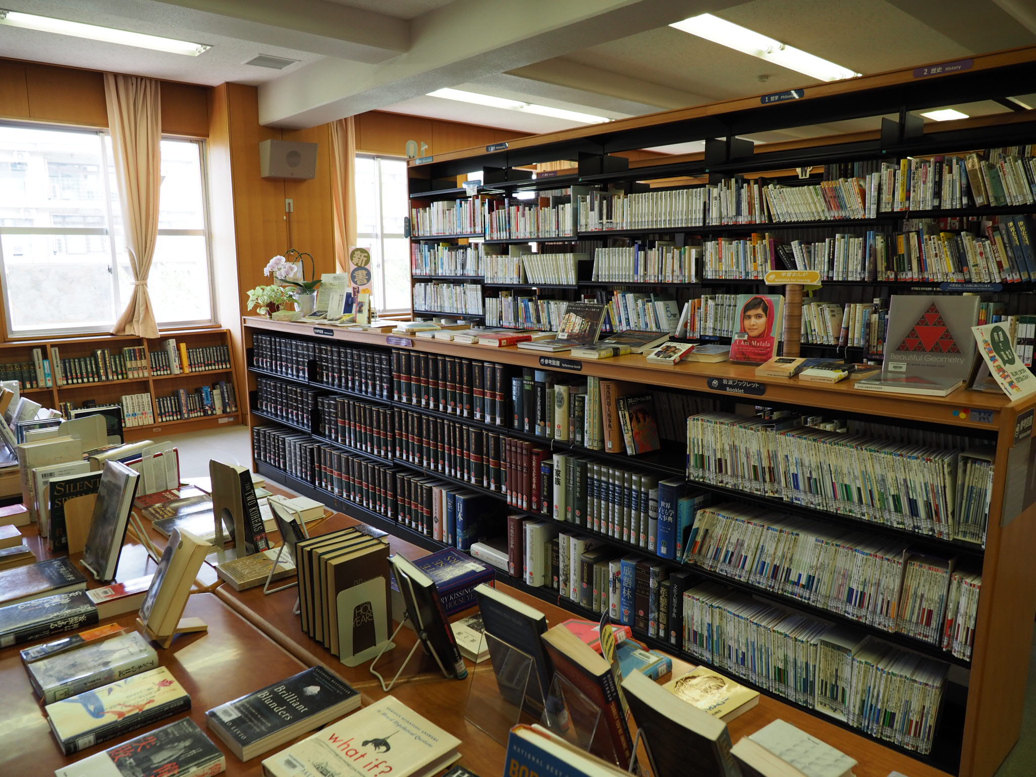 約3万冊の蔵書中5千冊が外国語の書籍。図書室の中も国際的です。