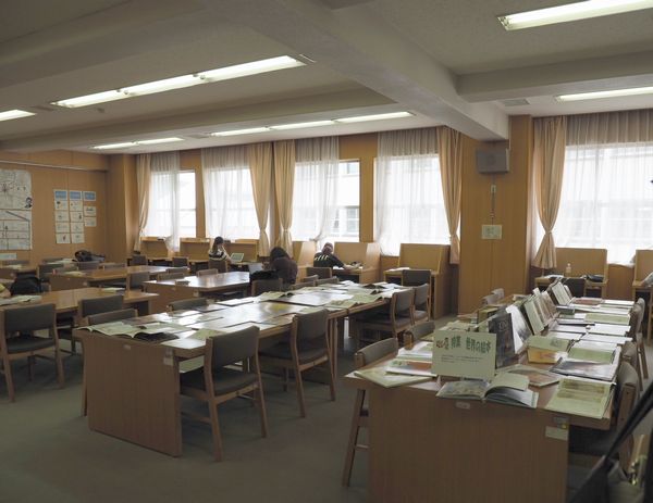 スタンプラリー始まって初めての国立校、そして男子校です。 ここは、図書スペースとコンピュータースペースが隣接しており、