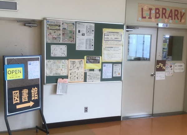 図書館の入口です(図書館の中では、司書さんが図書館を案内中)。