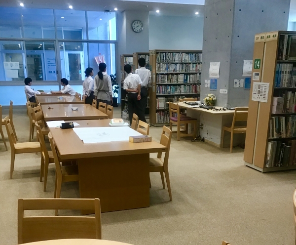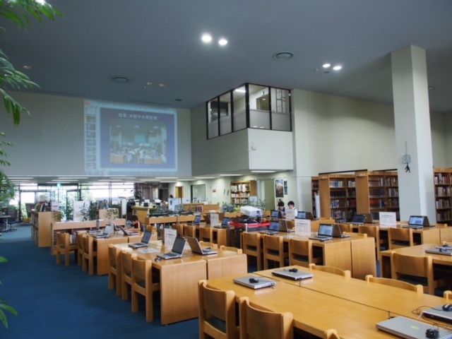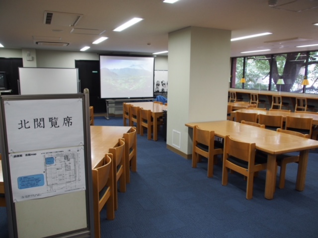 館内には、4クラス同時に授業展開できる閲覧席が用意。こちらは入り口すぐの北閲覧席。