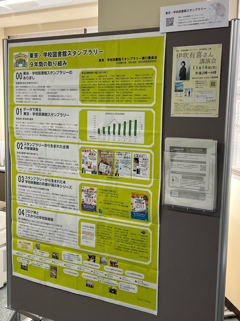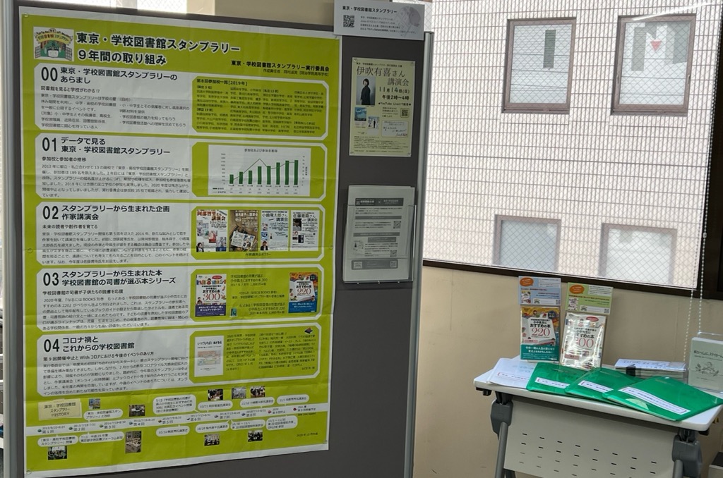 東京・学校図書館スタンプラリーについてまとめられたポスターがドーンっと掲示中