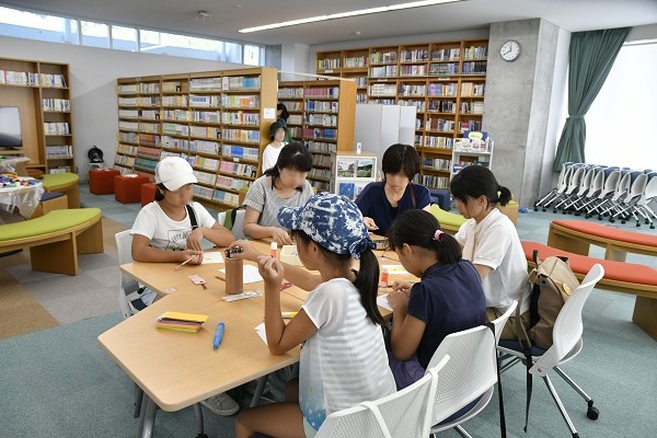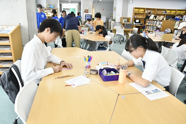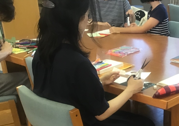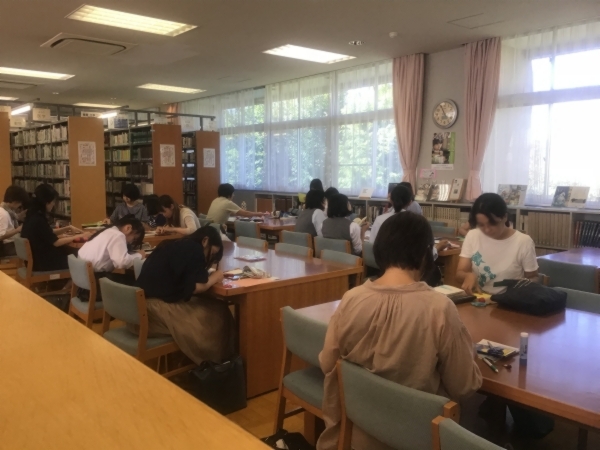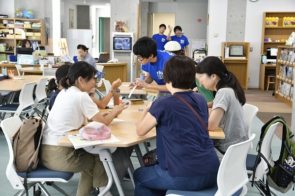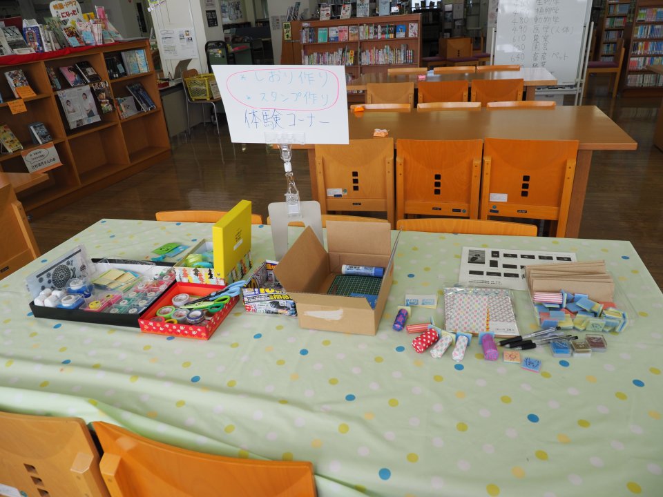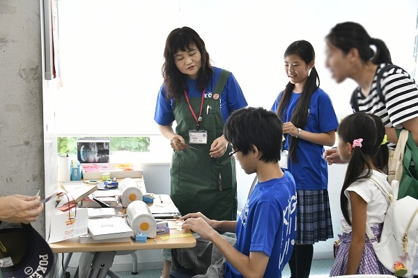 お揃いの青色Tシャツを着た図書委員さんが作り方を説明してくれて、