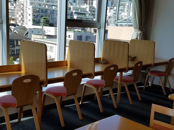 窓際には仕切りつきの個人机も。集中できる場所です。