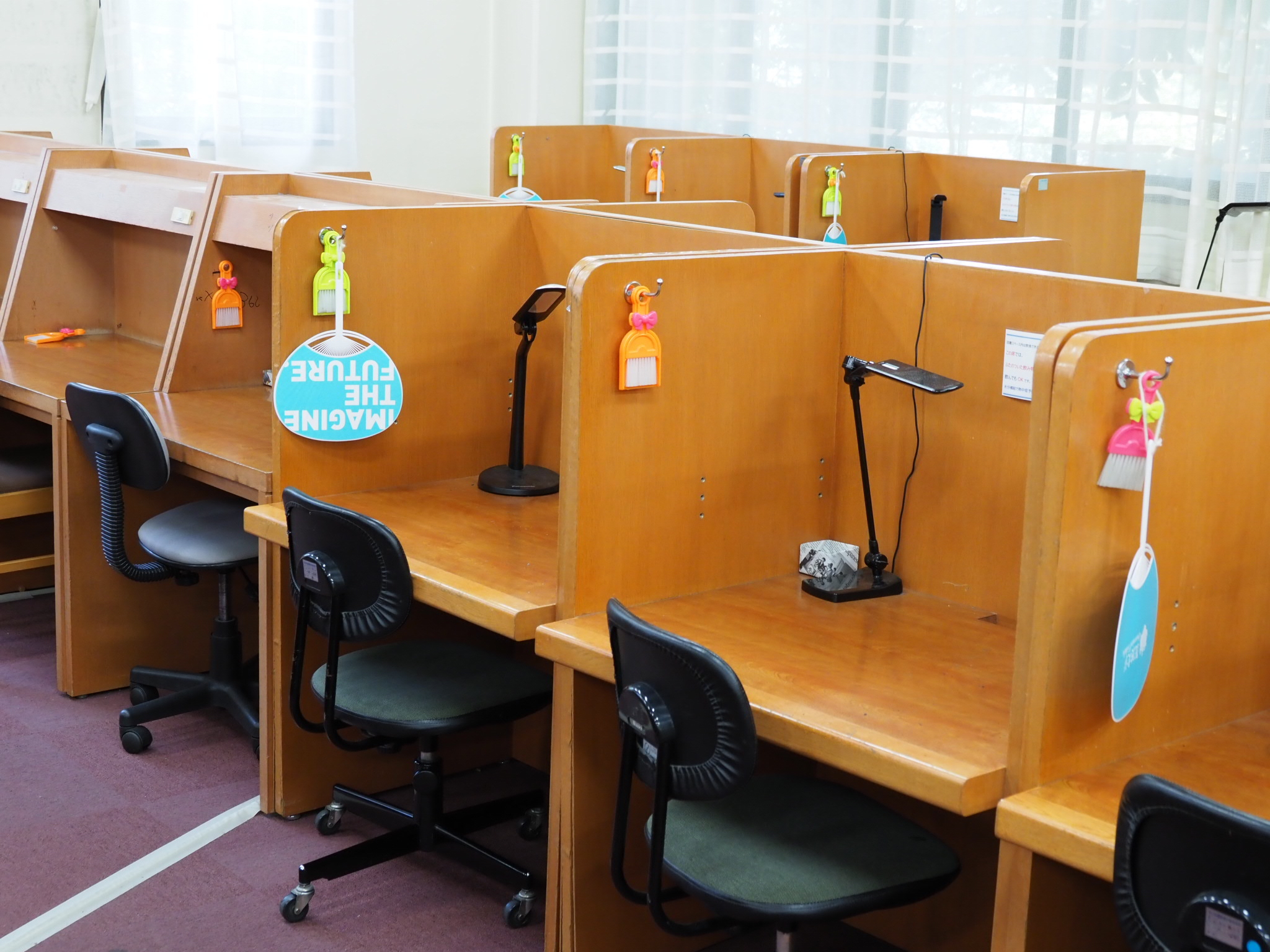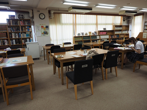 スタンプラリー始まって初めての国立校、そして男子校です。 ここは、図書スペースとコンピュータースペースが隣接しており、