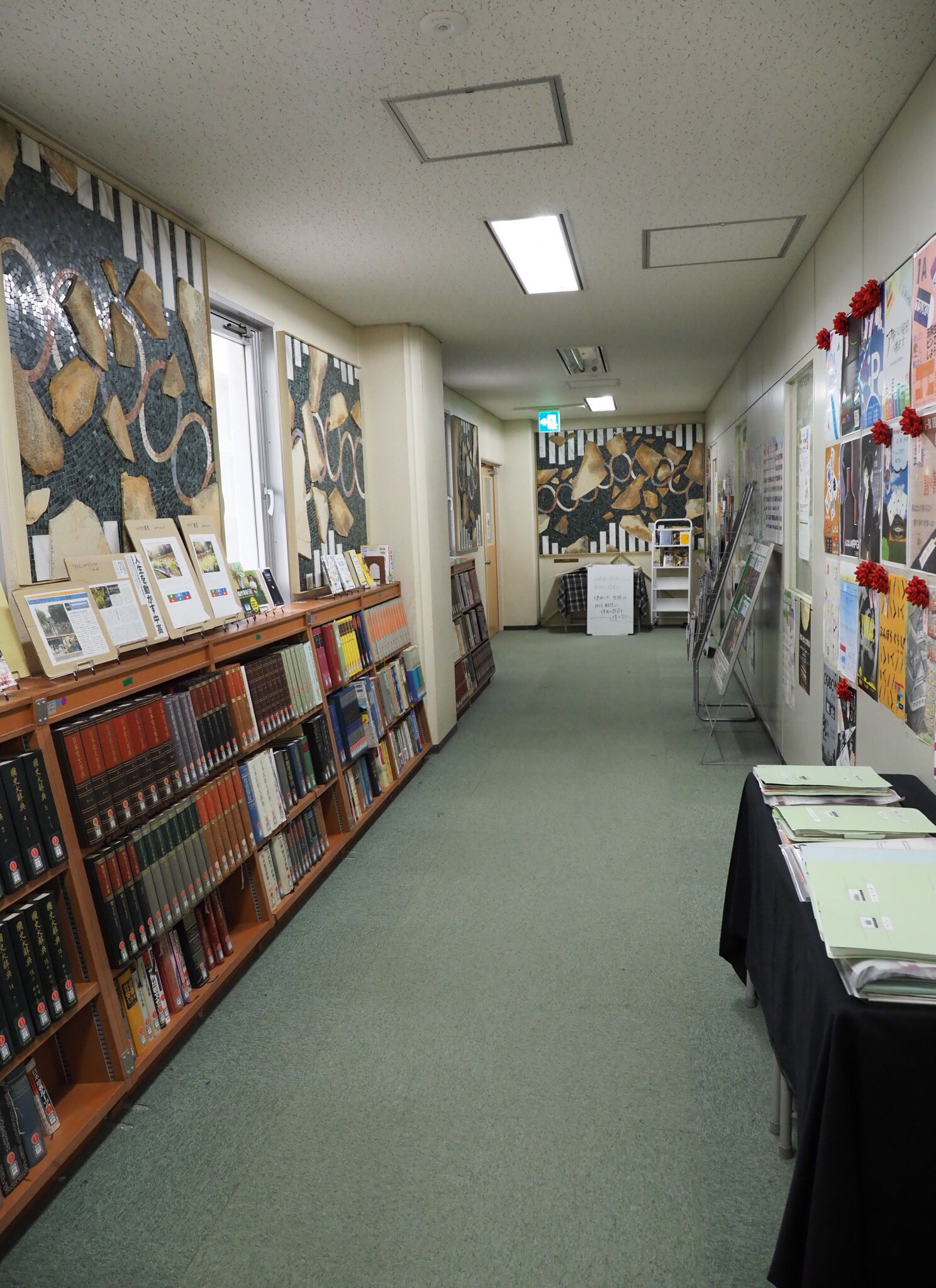 図書館の入口です(図書館の中では、司書さんが図書館を案内中)。