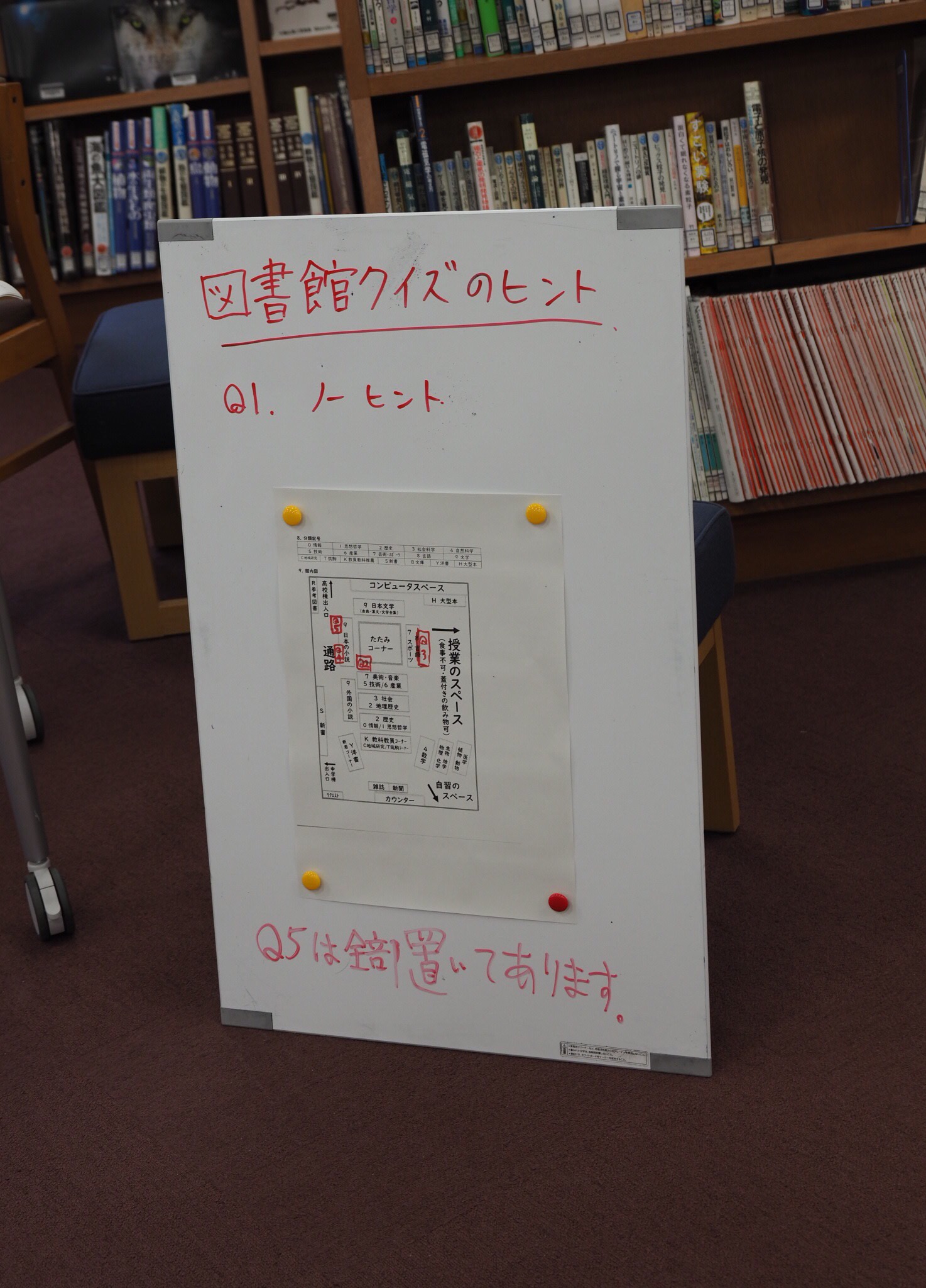 そして、今回のイベントの一つの図書館クイズのヒントが…。 さて、参加されたみなさん、何問正解できましたか?
