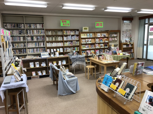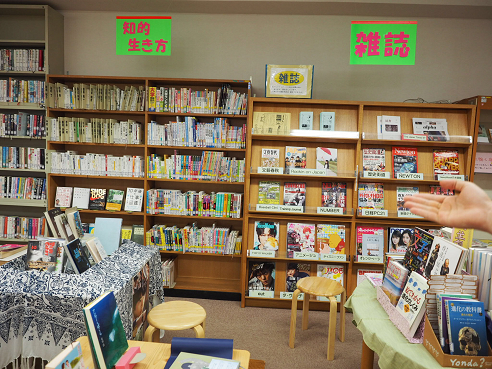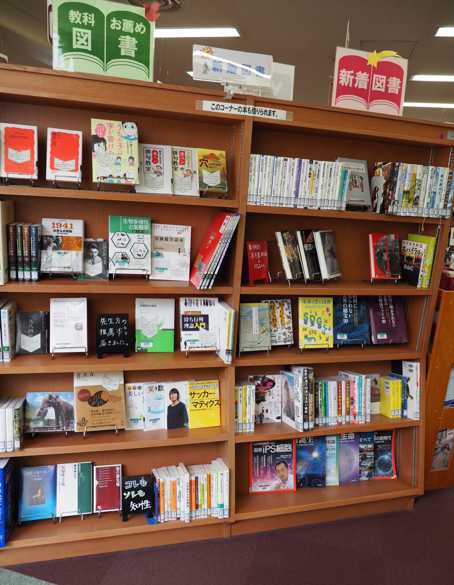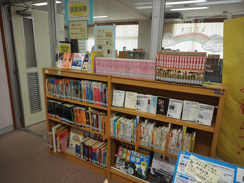 ちょっと涼しげな表紙の図書にお出迎えされてホッと……。