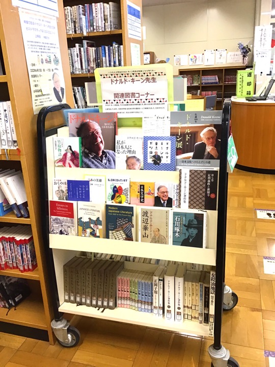 また、Facebookページに掲載していただいたドナルド・キーン先生関連図書コーナーについて、キーン誠己様よりコメントをいただけて嬉しかったです。