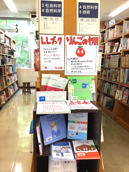 LLブックや点字本などが並んでいました。