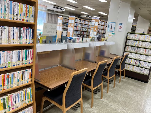 館内は、集中しやすい自習スペースと、新着や特集のゾーンがきちんと分けられている印象でした。