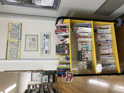 図書委員が図書館の本を書店で自由に選ぶイベントで、その時の様子が分かる写真と共にコーナーが展開されていました。